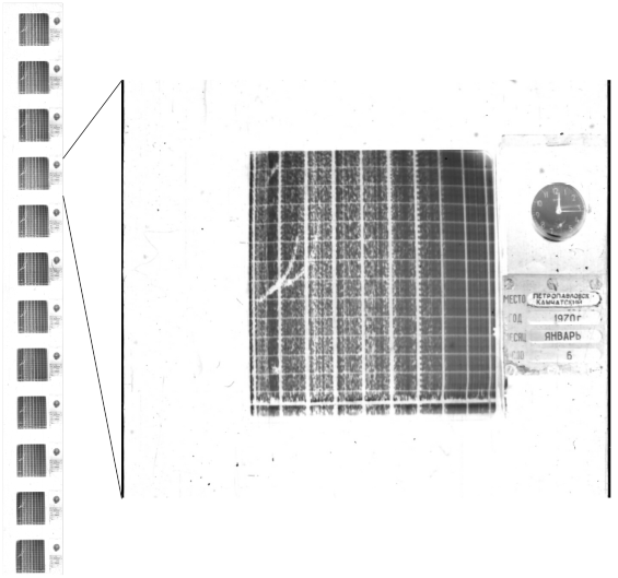 ИКИР ДВО РАН обладает архивом ионограмм ионосферной станции "Паратунка" расположенной в поселке Паратунка, Елизовский район, Камчатский край (координаты станции 52°58'23"N, 158°14'50"E.) за период 1968-2000 гг., которые хранятся на фотоплёнках (рис.1.).